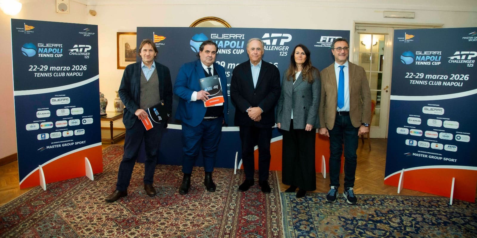 Alla presentazione sono intervenuti il Presidente del Tennis Club Napoli, Riccardo Villari; l’Assessore allo Sport della Regione Campania, Fiorella Zabatta; Il Presidente Commissione Sport e pari Opportunità del Comune di Napoli Gennaro Esposito; il Group Chief Financial Officer del Gruppo Guerri Basilio Postiglione; il Direttore Generale di Master Group Sport, Antonio Santa Maria.