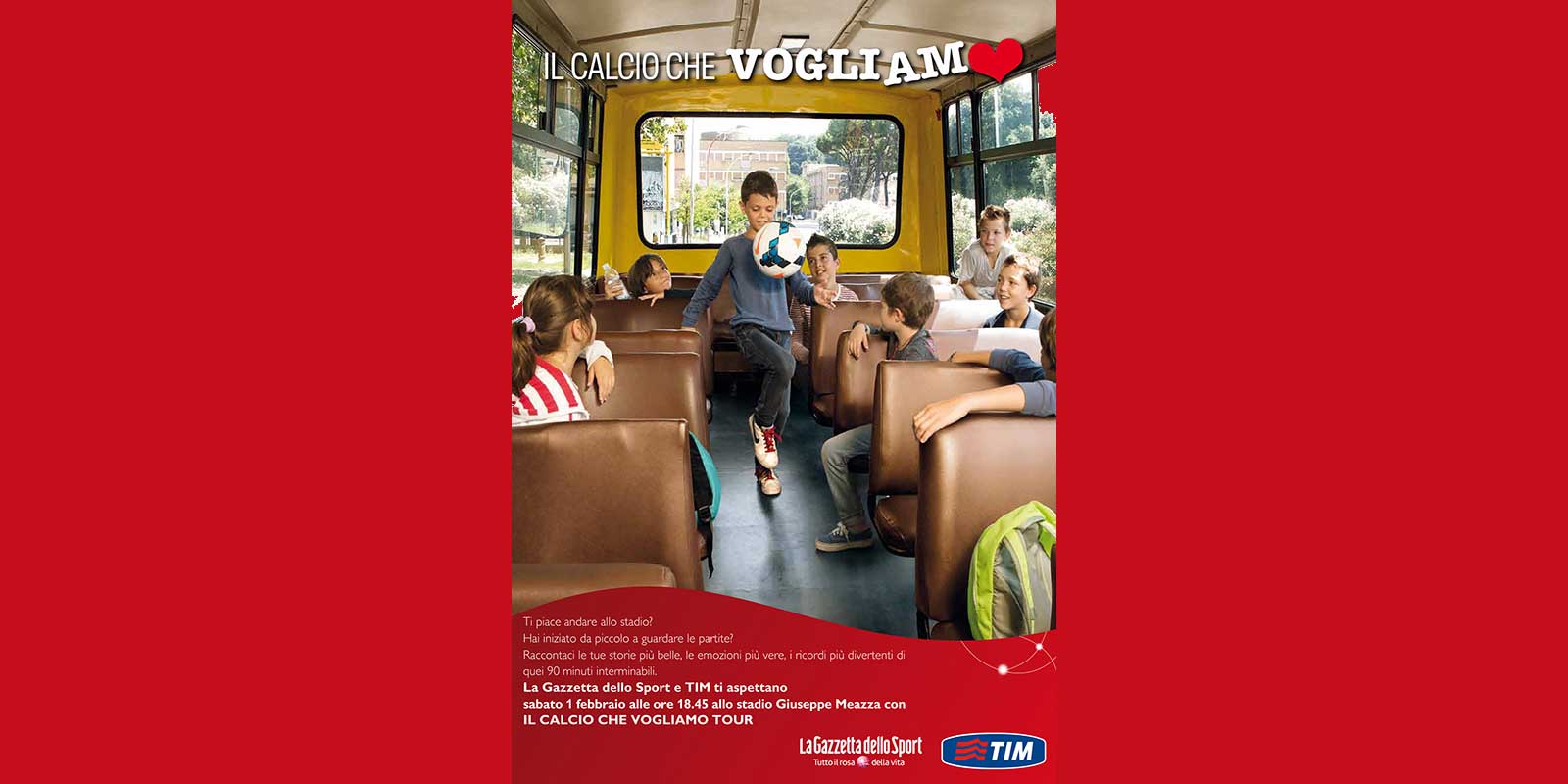 Il progetto promosso da TIM durante il Campionato di Serie A 2013/14, di cui Master Group Sport ha curato l’organizzazione, si è articolato in iniziative on-line e iniziative in loco create per coinvolgere i tifosi in occasione delle partite di campionato.