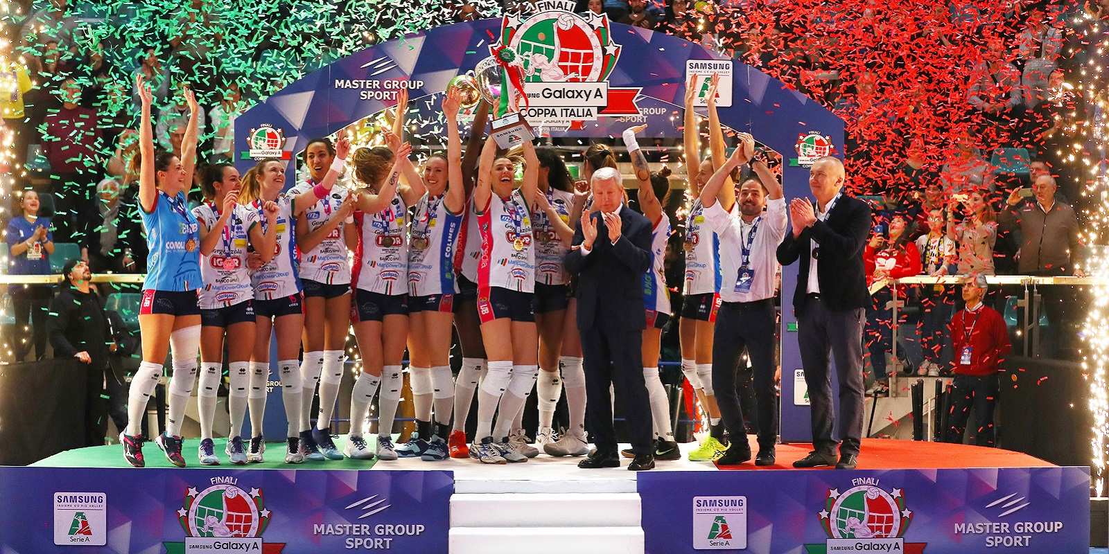 La Igor Gorgonzola Novara si aggiudica le Finali Samsung Galaxy A Coppa Italia, battendo prima la Saugella Team Monza nella semifinale di sabato e poi l’Imoco Volley Conegliano nella finale di domenica in un PalaDozza sold out. La squadra di Massimo Barbolini ha fatto così il bis di trofei stagionali dopo la conquista della Supercoppa Samsung Galaxy di novembre a Novara.