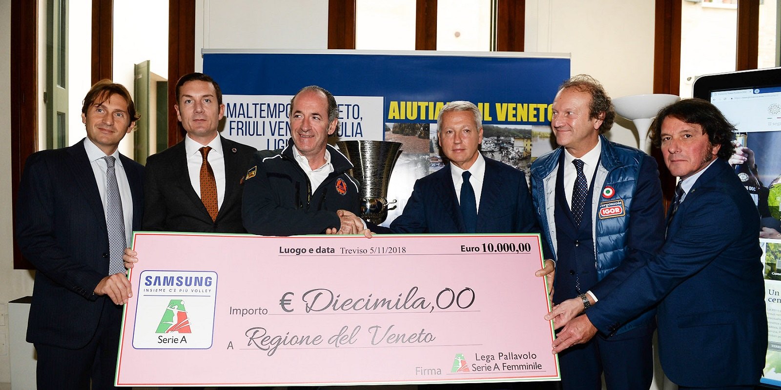 I temi tecnici e spettacolari di un evento che si preannuncia altamente emozionante hanno inevitabilmente fatto spazio all'emergenza meteorologica che sta affliggendo il Veneto e più in generale tutto il Paese. E la Lega Pallavolo Serie A Femminile, a testimonianza dei valori di condivisione e solidarietà del mondo del volley, ha voluto mostrare la propria vicinanza alle popolazioni colpite dal maltempo, offrendo un contributo economico alla Regione Veneto, che proprio in questi giorni ha attivato la campagna "Aiutiamo il Veneto".